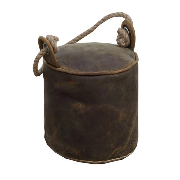 Made from buffalo leather, rope handle and filled with polyfoam.