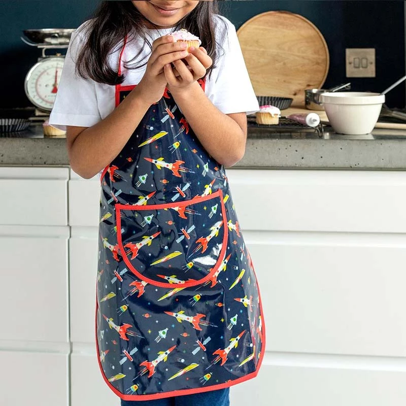 This Space Age print apron will keep kids’ clothes clean while they help you cook or bake up a storm in the kitchen! Also great for messy arts & craft activities.