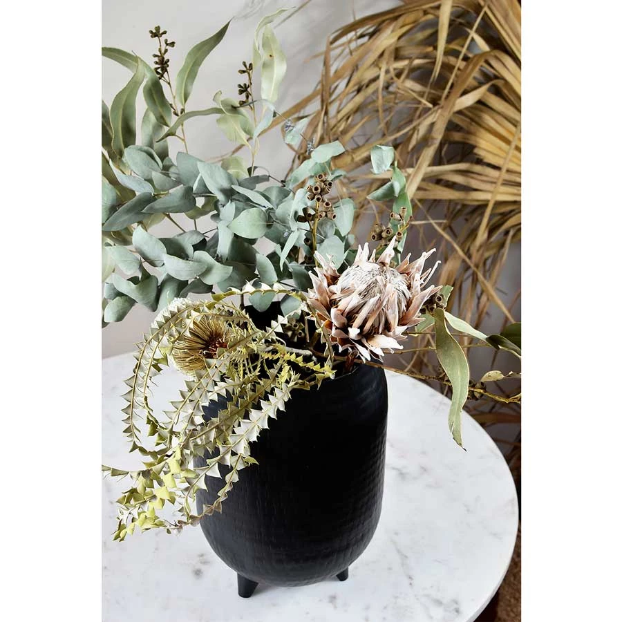These beautiful artisan-crafted black metal planter vases feature individual hammered detail together with a lovely organic curved shape and three feet.