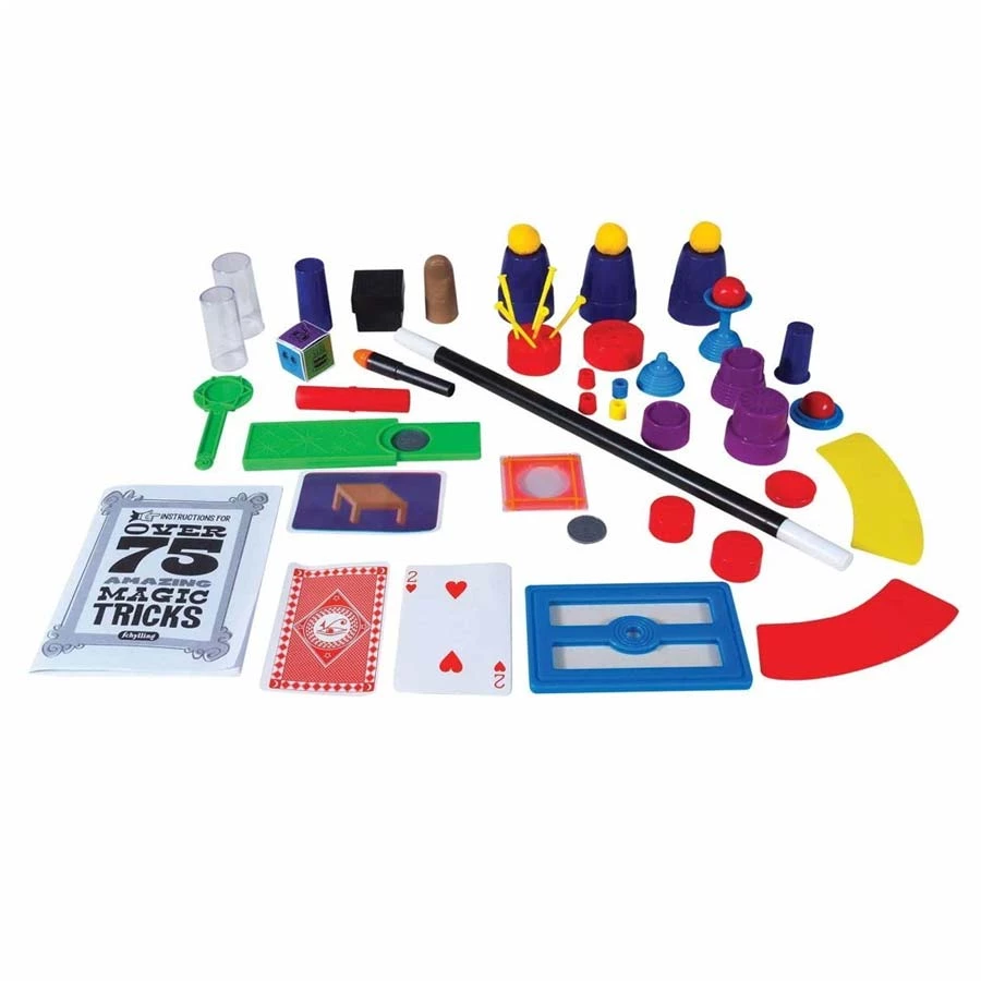 Contents: Various pieces to perform over 75 magic tricks, easy to learn instruction book.