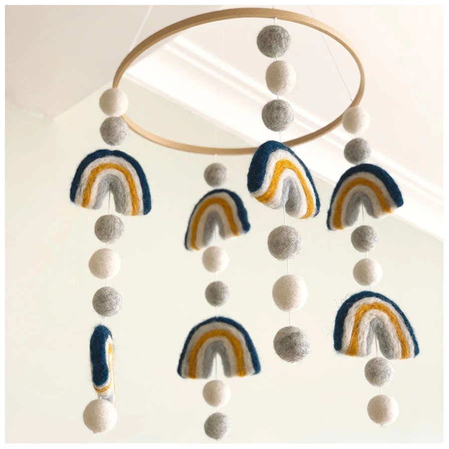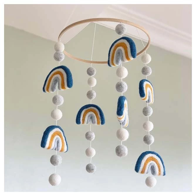 Sheep-ish Design Hand Made NZ Wool Baby Mobile – Rainbows Blue