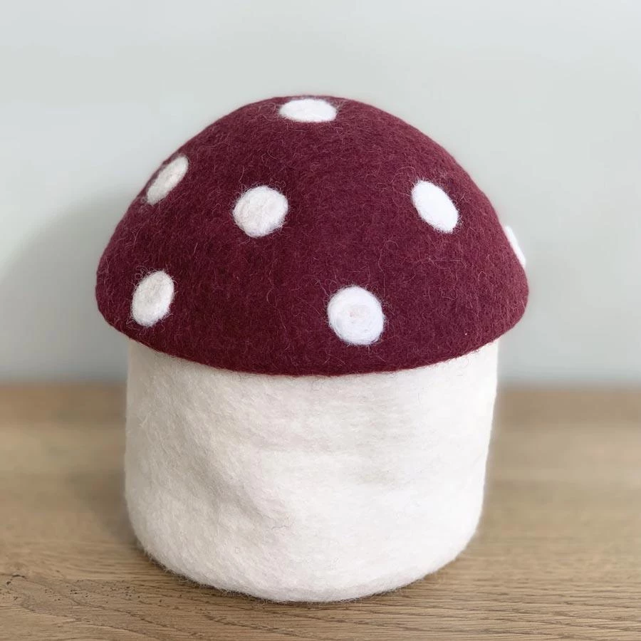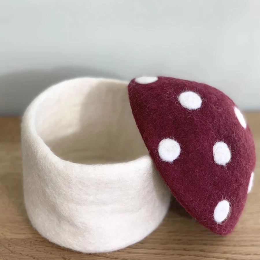Sheep-ish Design Hand Made NZ Wool Toadstool Storage Box – Mulbery