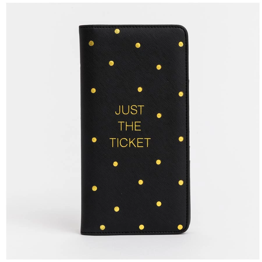This cool black & gold travel wallet features a fun saying and is the perfect travel accessory.