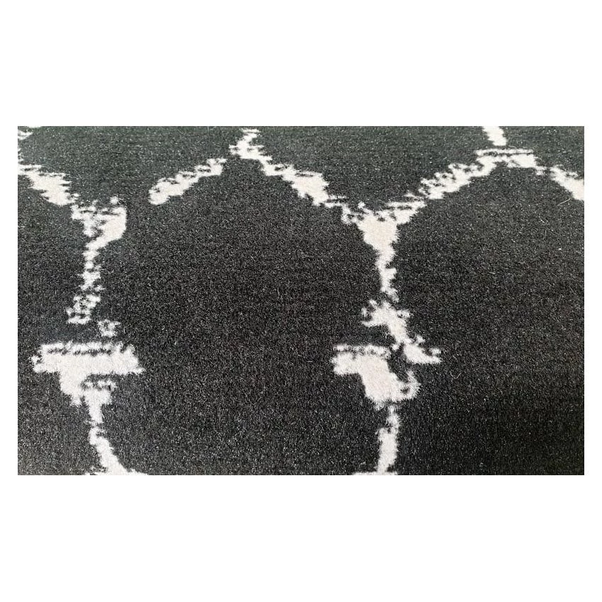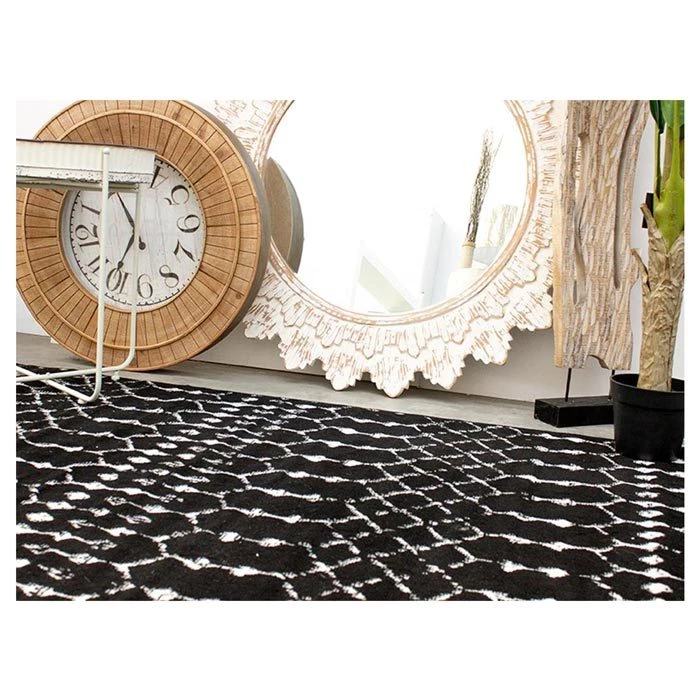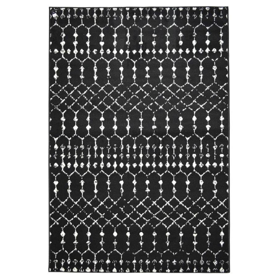 Featuring an abstract pattern against an black background, this floor rug will add comfort and style to your home.