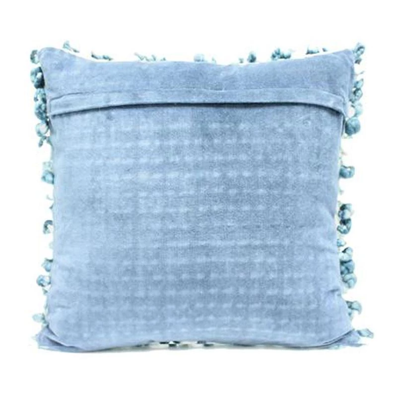 Reverse side has a blue velvet-feel and zip closure that allows easy removal of inner cushion (included).