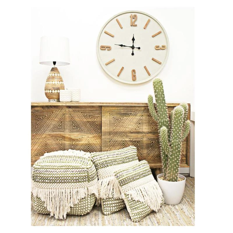 Create a relaxed boho vibe with this gorgeous cushion. Featuring natural & green weaving and natural coloured fringing.