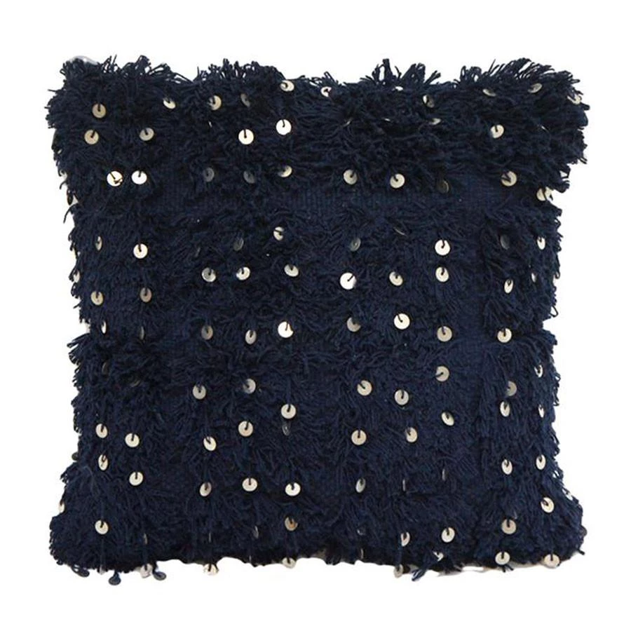 Attractive petrol blue cushion with metal embellishments – throw it on your bed or couch to make your interior pop!