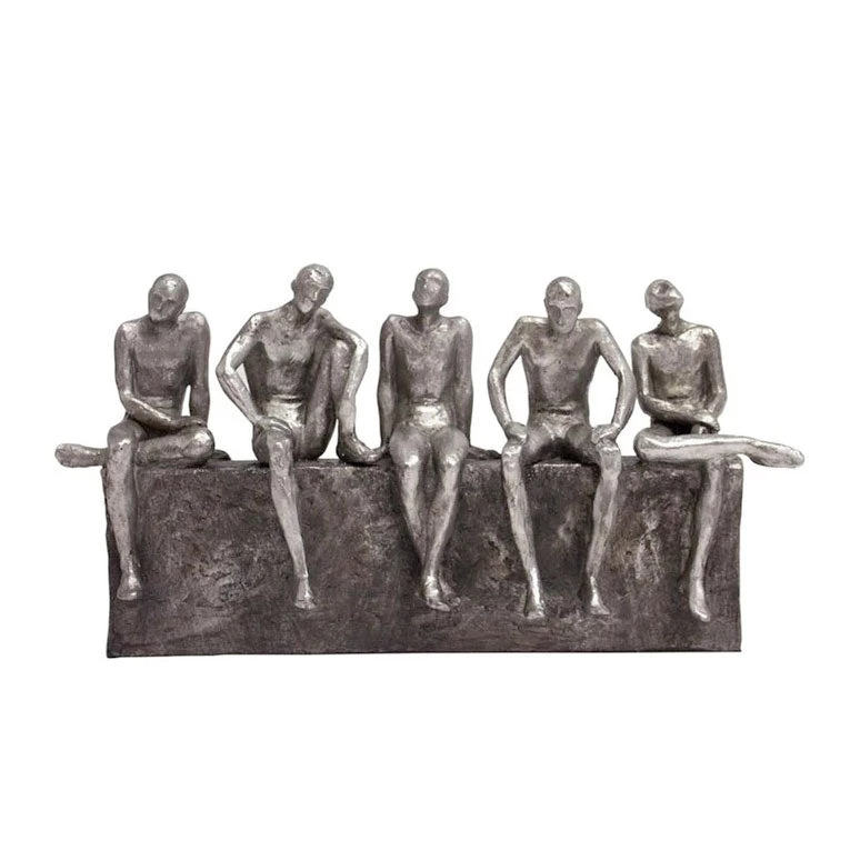 Made from polyresin, this metallic home decor piece features five men sitting on a block.