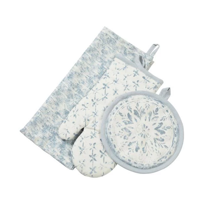 Made from 100% Cotton, the set includes an oven glove, pot mitt & tea towel. Pair with the matching apron for a cohesive look.