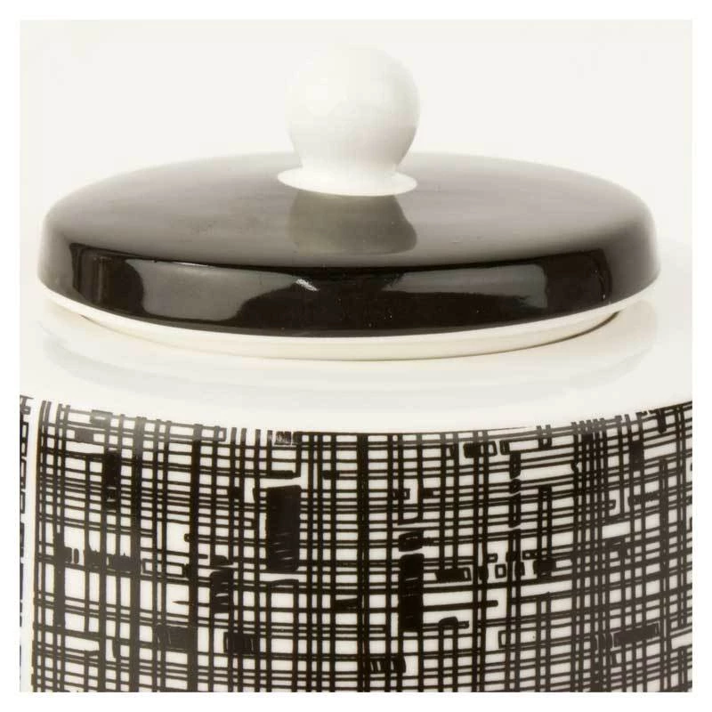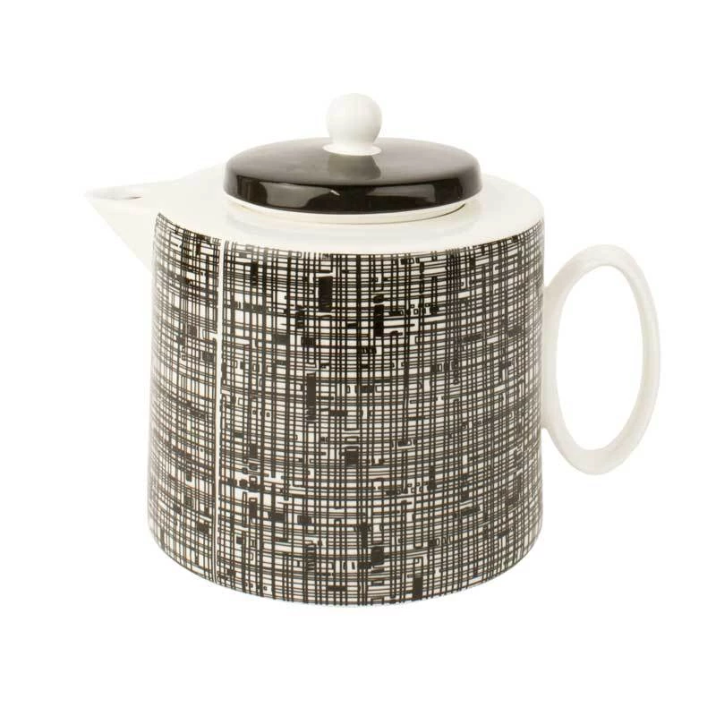 This teapot features a sleek design and modern black & white print that is sure to impress your guests.