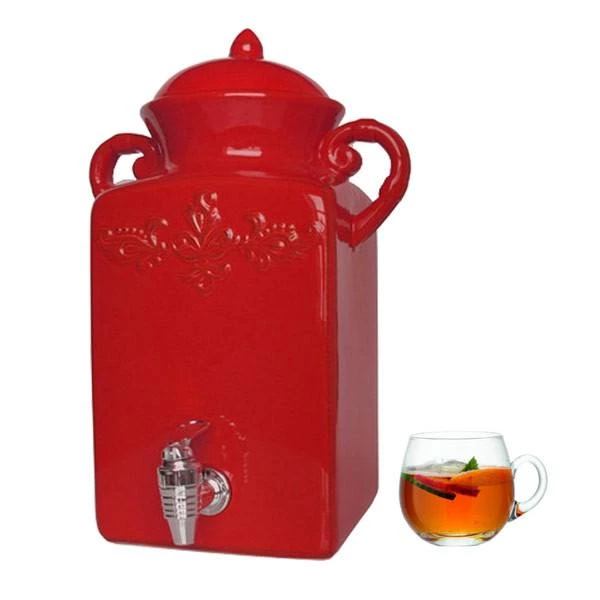 Constructed of durable earthenware, this beverage dispenser has a large lid, so adding beverages is quick and simple. An easy-to-use spigot makes pouring a breeze and it has a large 256 ounce (7.6L) capacity.
