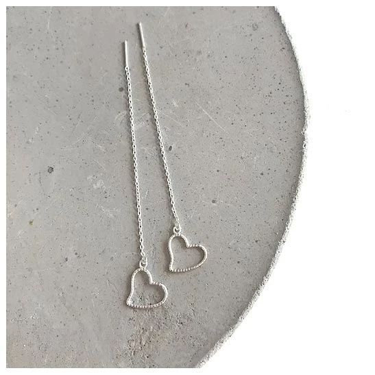 These sterling silver thread earrings have a gorgeous heart on the end.