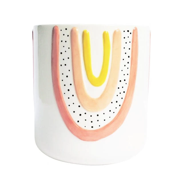 This bright and cherry rainbow inspired planter pot with add some fun to your interior space. Fill with a plant and voila!