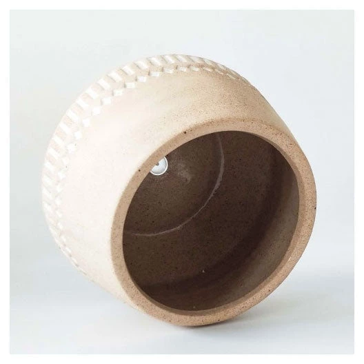 Featuring a matte finish with a glossy design, glazed interior, drainage hole & stopper at bottom.