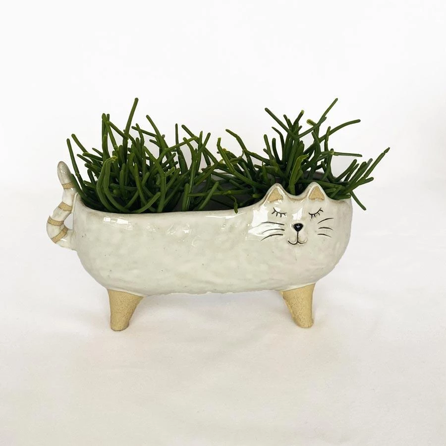 This cute kitty is perfect for displaying small plants or succulents. Super sweet on its own or group with other planters.