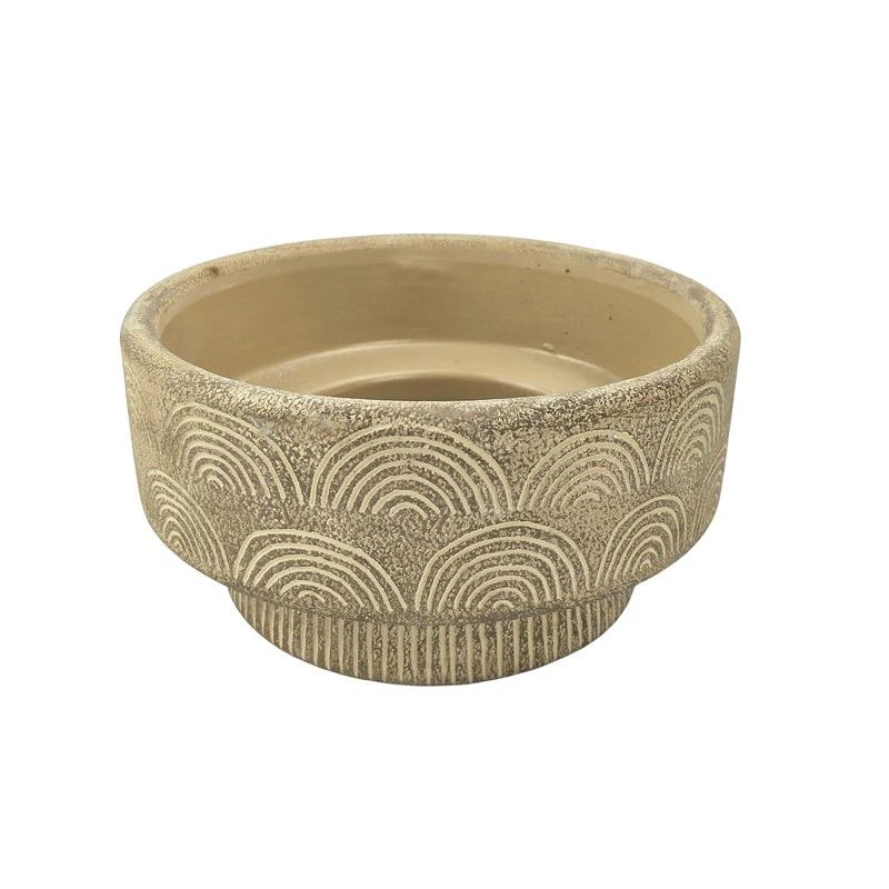 A modern sand coloured planter pot featuring a debossed rainbow design.