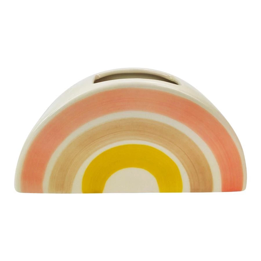 Could also be used as a vase on a flat surface against a wall. Rainbow design is on one side.