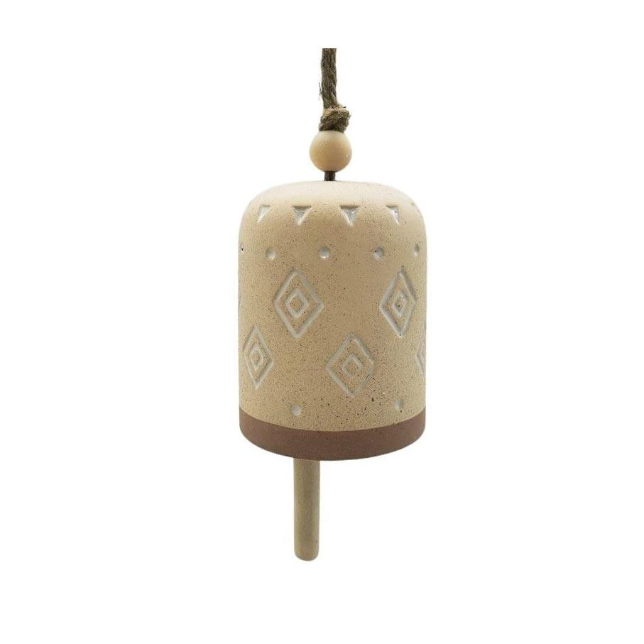 This sand and terracotta coloured windchime features a tribal inspired design.