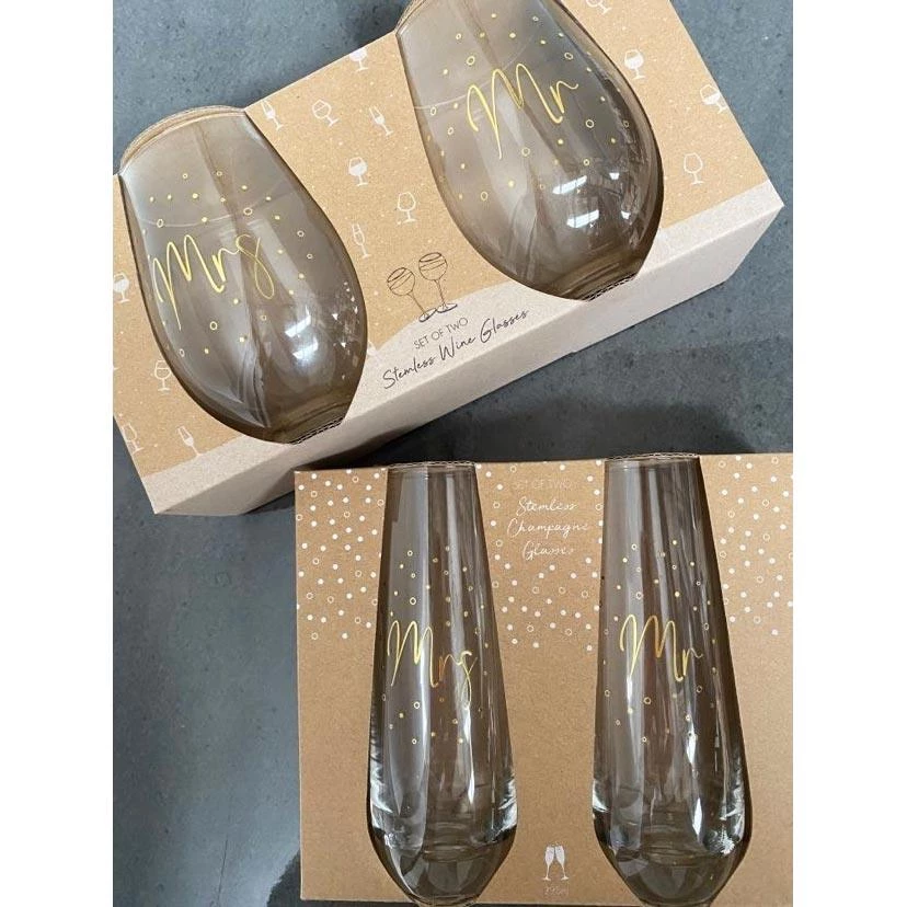 Urban Products Stemless Champagne Glass Set – Mr & Mrs