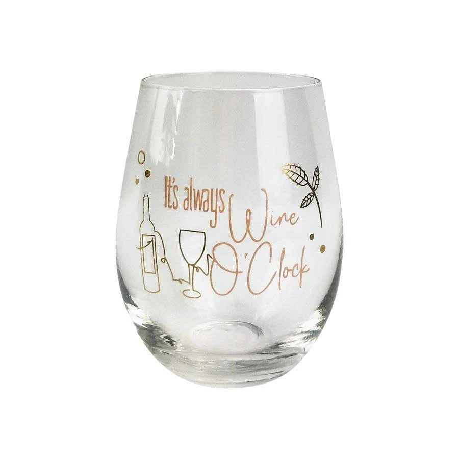 Made from quality glass, the glass features the saying ‘It’s Always Wine O’Clock’.Â