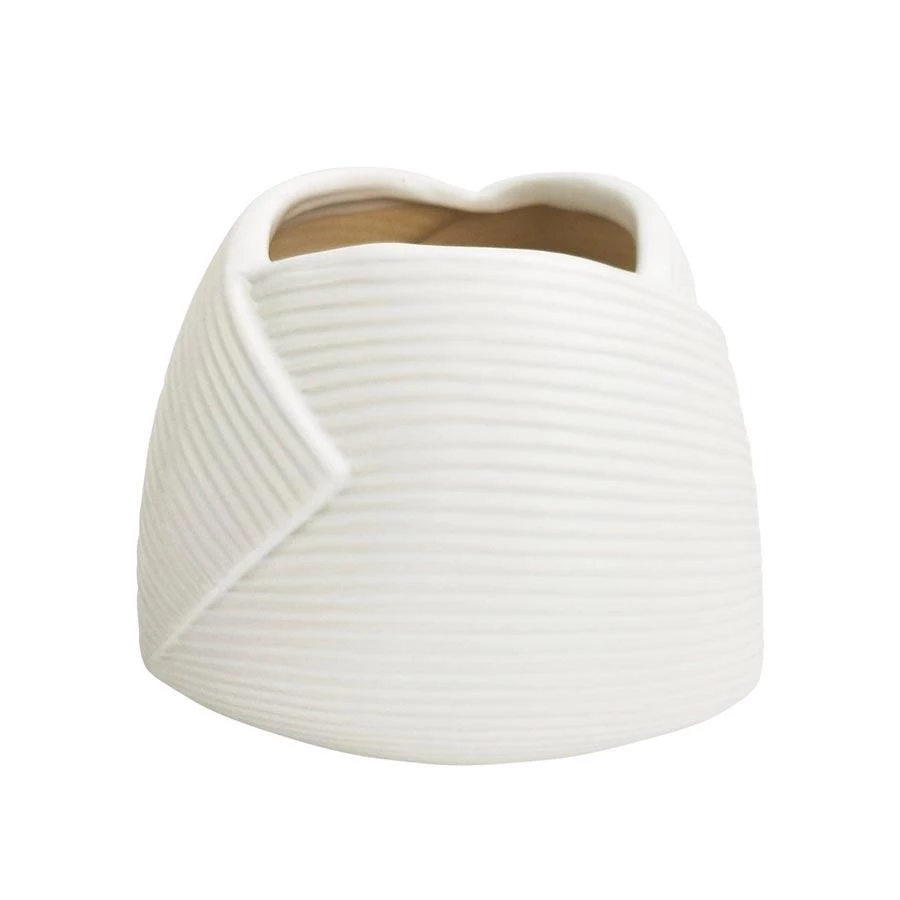 A fabulous planter featuring a fun ribbed wrap design & white glaze. Drainage hole & stopper.