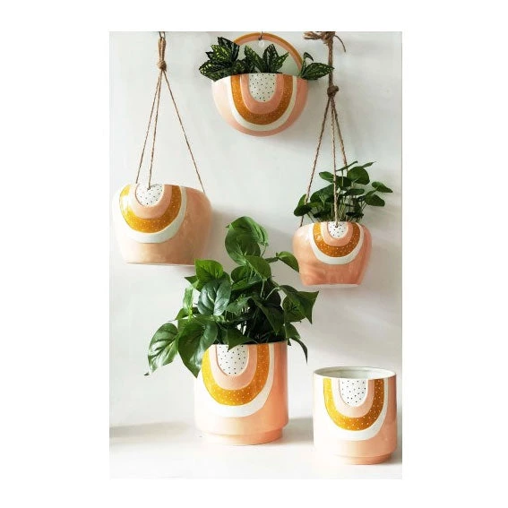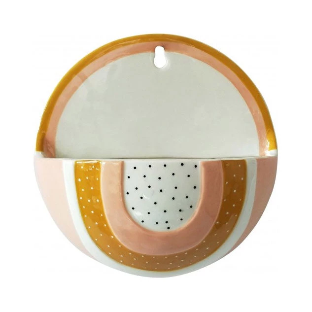 Urban Products Woodstock Rainbow Dot Wall Planter – Pink/Mustard