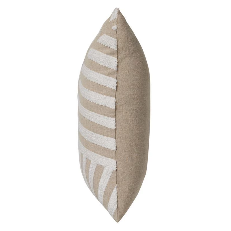 The Elena cushion is inspired by beach sand and limestone. Featuring detailed embroidery it will add a calming feel to your living space.