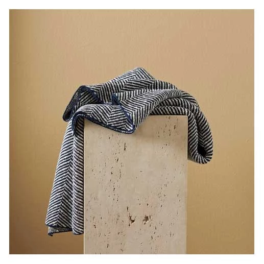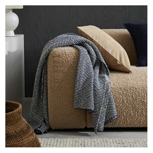 Beautifully soft, this 100% cotton blue herringbone print throw has a boucle texture on the reverse.